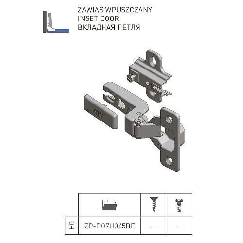 | Состав комплекта: | петля, ответная планка, маскировочная накладка |