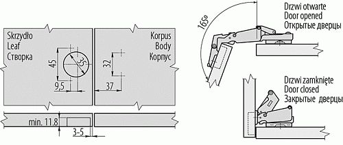 Петля накладная GTV 165 градусов с H-2, 45мм - механизм для деревянных мебельных фасадов с широким углом открывания.