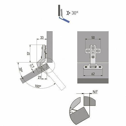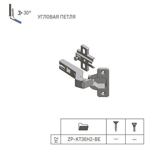 Петля накладная GTV 30 градусов с планкой H-2, 45мм - механизм для открывания фасада под определенным углом, в соответствии с конфигурацией мебельной конструкции.