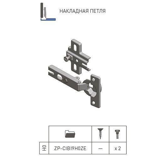 Петля накладная GTV CI09 mini с планкой с евро - ZP-CIBI9H0ZE