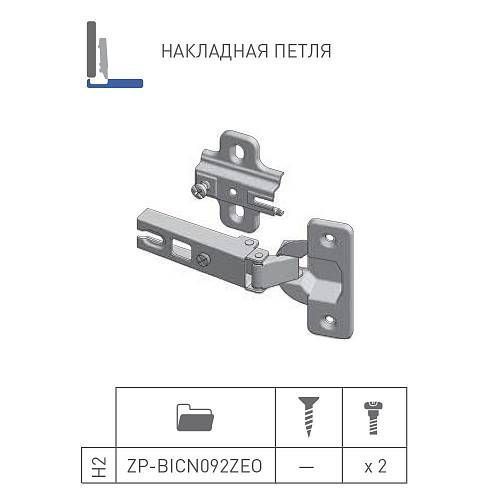 Петля накладная GTV CN09 с планкой H-2 с евро, 45мм - устройство, посредством которого фасад прикрепляется к корпусу мебельной конструкции и осуществляется открывание/закрывание дверцы.