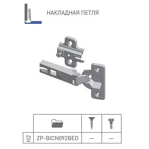 Петля накладная GTV CN09 с планкой H-2, 45мм - устройство, посредством которого фасад прикрепляется к корпусу мебельной конструкции и осуществляется открывание/закрывание дверцы.