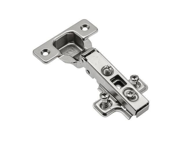 Петля накладная GTV ZP-CONL09 клиповая с планкой H-0, 45мм - устройство, посредством которого фасад прикрепляется к корпусу мебельной конструкции и осуществляется открывание/закрывание дверцы.