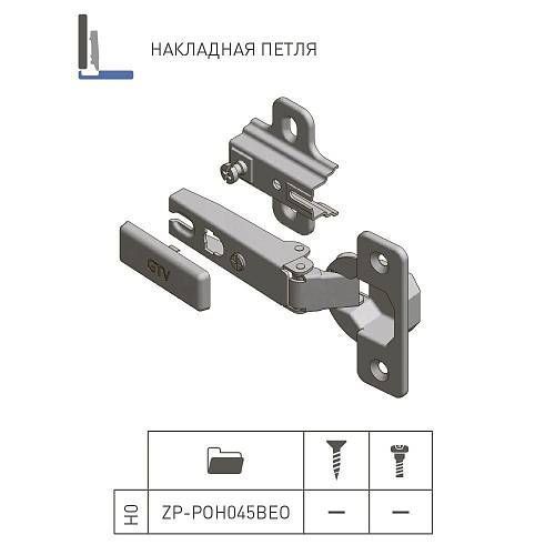 Петля накладная GTV ZP-POH045BEO самооткрывающаяся с планкой H-0 без евро - ZP-POH045BEO