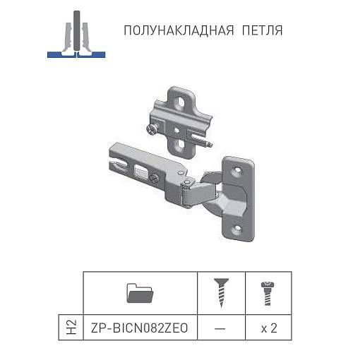 Петля полунакладная GTV CN08 с планкой H-2, 45мм - устройство, посредством которого фасад прикрепляется к корпусу мебельной конструкции и осуществляется открывание/закрывание дверцы.