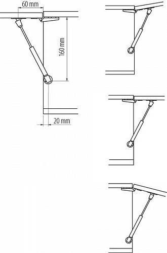 Газлифт мебельный 6 кг. GTV (L-160 мм) - мебельный подъемник, предназначенный для открывания фасада малых размеров. Длина газлифта – 160 мм, что необходимо учитывать при подборе подъемника к фасаду определенной высоты.