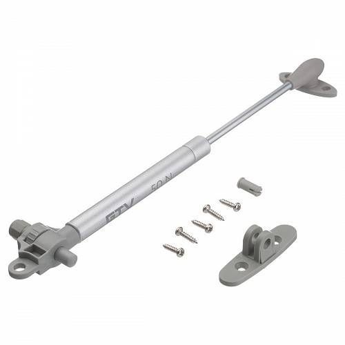 Подъёмник газовый с амортизатором 50N GTV, серый - мебельный подъемник, в конструкции которого предусмотрены доводчик и амортизатор. При правильной регулировке газлифта, в момент закрывании фасада исключается удар и сопутствующий ему шум.