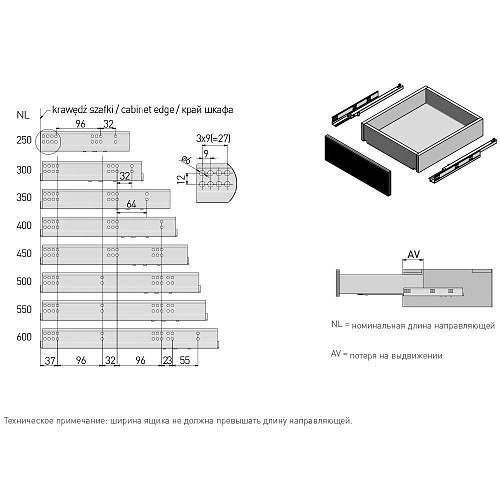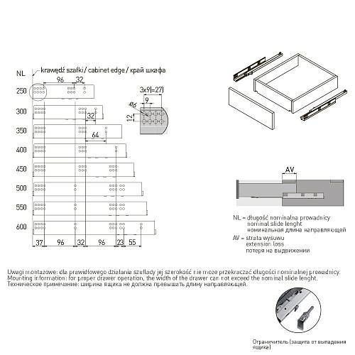 КупитьНаправляющие MODERN SLIDE не полного 3/4 выдвижения L-500 для деревянных ящиков с доводчиком без кре - PB-G10HX500-H