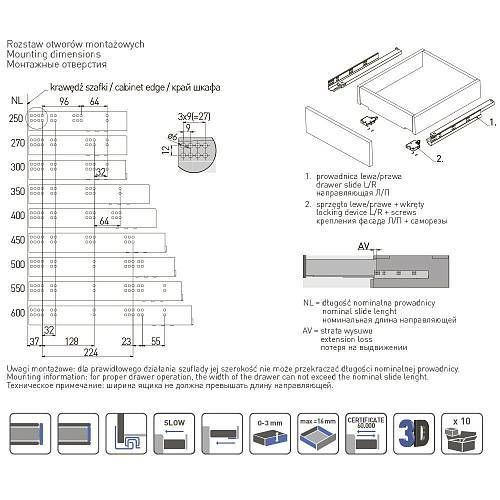 Направляющие MODERN SLIDE L-600 полного выдвижения для деревянных ящиков с доводчиком - PB-0SHX-600-A