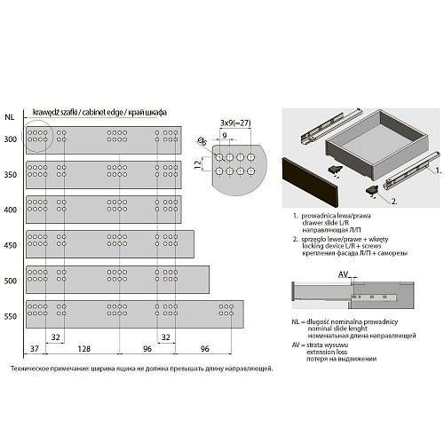 Направляющие MODERN SLIDE L-550 с 3D регулировкой полного выдвижения для деревянных ящиков с доводчи - PB-3D0SHX18-550-H
