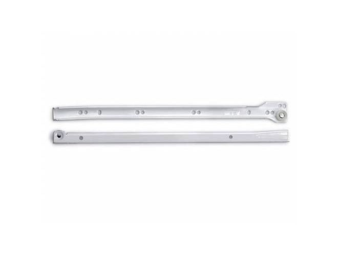 Роликовые направляющие GTV 0,9х450 мм, белые - механизм неполного выдвижения для мебельных ящиков, отличающийся простотой конструкции. Роликовые направляющие подходят для бюджетной мебели, когда важны минимальные затраты на фурнитуру и не требуется расширенный функционал системы выдвижения.