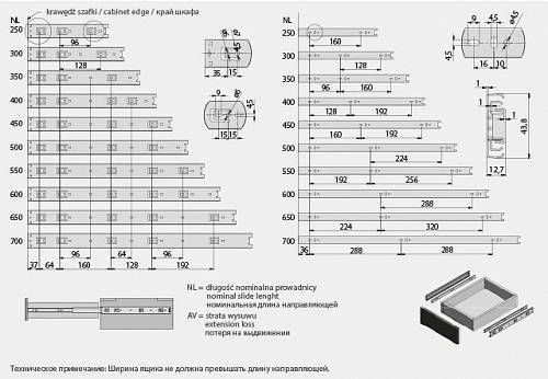 Направляющие шариковые полного выдвижения GX2 45/400 мм - мебельные механизмы, используемые при сборке выкатных ящиков, а также применяемые в различной функциональной фурнитуре, такой как сегрегаторы, корзины для шкафов-купе и в прочих выдвижных системах в кухонной, гардеробной, офисной и специализированной мебели.