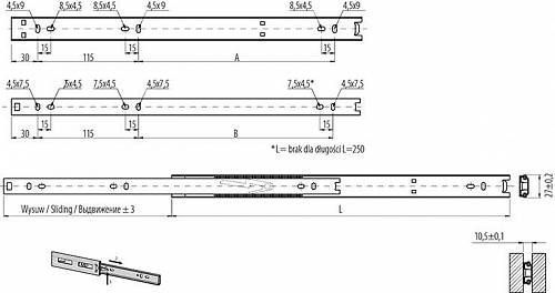 Направляющие шариковые неполного выдвижения 27/450 - PK-0H27-4500