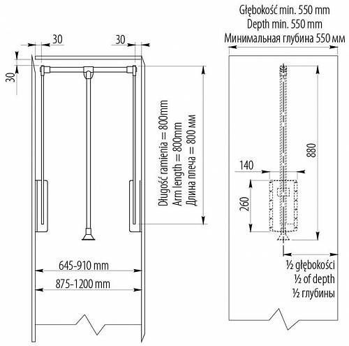 КупитьПантограф 83/115 стальной с газовым амортизатором, черный, в модуль 875-1200 мм - PG-GA8311520