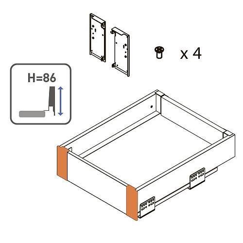 Соединитель фасада для AXIS PRO, внутренний, низкий 84 мм, белый - монтажный элемент выдвижной системы AXIS PRO, предназначенный для установки передней панели внутреннего ящика.