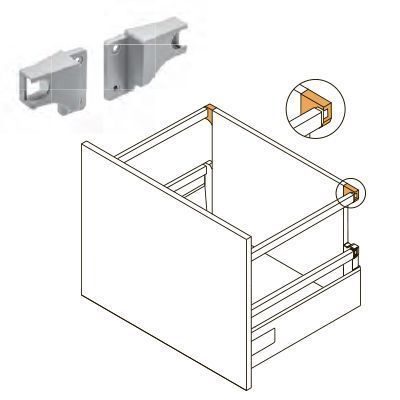 Соединитель задней стенки для рейлингов, белый - крепление, посредством которого рейлинг фиксируется на задней стенке выдвижного ящика Модерн Бокс.
