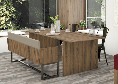 Декор Древесина Аттик представляет собой репродукцию типичной альпийской древесины с особо сильным контрастом между светлыми натуральными элементами и сильно выветренными тёмными участками. Благодаря ярко выраженному эффекту ручной работы этот декор хорошо бы подошёл, например, для оформления магазина товаров для активного отдыха или ресторана в рустикальном стиле.