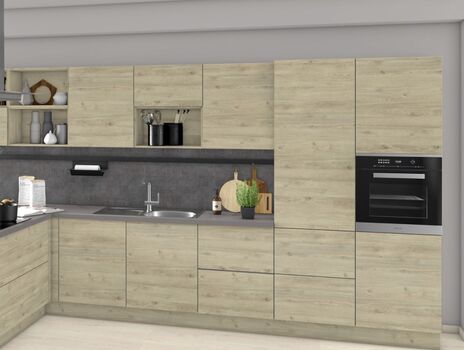 Цвет декора Дуб Давос имеет тёплый коричневый оттенок со множеством цветовых нюансов от очень тёмных, почти чёрных элементов до светлых участков в виде пор. Поэтому данная репродукция древесины дуба прекрасно сочетается, в первую очередь, со светлыми однотонными декорами