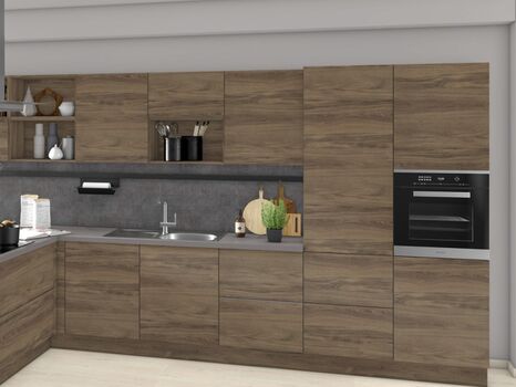 Декор Дуб Чарльстон тёмно-коричневый представлен в цветовом оттенке, напоминающем древесину ореха. Необычайная естественность данной репродукции проявляется в ярко выраженном переходе от более светлых к более тёмным участкам.