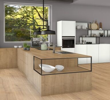 Дуб Гамильтон натуральный – это совершенно аутентичная репродукция дуба классически натурального оттенка с выразительными тёмными природными включениями древесины и сучьями. Рисунок декора происходит из сферы напольных покрытий. Таким образом, даже при использовании этого декора в производстве мебели создаётся впечатление, что она изготовлена из цельных досок.