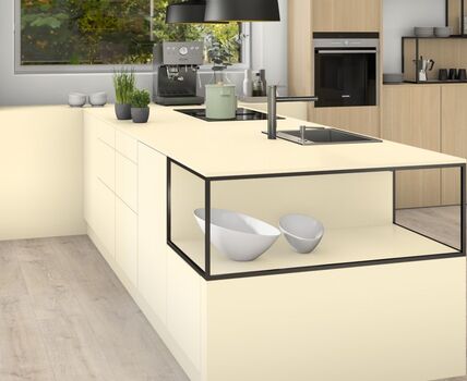 Ванильный жёлтый находится между жёлтыми и кремовыми оттенками и часто используется для создания сдержанных цветовых решений и тёплого дизайна. Особой популярностью пользуются сочетания с древесными декорами более нейтральных и тёмных оттенков.