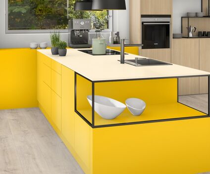 Насыщенный декор Жёлтый бриллиант выгодней всего смотрится в качестве акцента, например, в сочетании с тёмными репродукциями материалов и со светлыми белыми оттенками. За счёт своей интенсивности он принадлежит к числу базовых цветовых оттенков.
