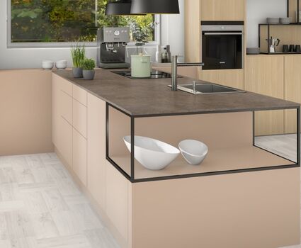 Декор Бежевый имеет ярко выраженный красноватый тон. За счёт такого промежуточного характера оттенка этот цвет находится между бежевым и коричневым. Комбинации с нейтральными, а также красноватыми репродукциями древесины или материалов смотрятся чрезвычайно гармонично.