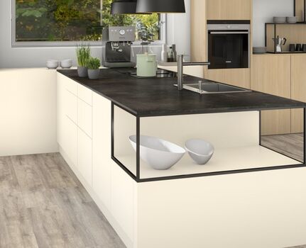Крем бежевый – самый популярный однотонный декор в кухонной мебели после Белого. В этой области такой цвет называется Магнолия. Тёплый и нейтральный, он сочетается почти со всеми древесными декорами, создавая атмосферу уюта.