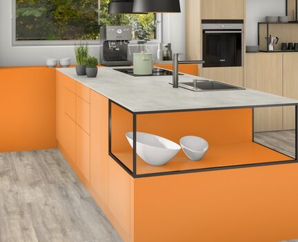 Чистый и насыщенный Оранжевый выгодней всего смотрится в качестве акцента в сочетании с очень светлыми или очень тёмными репродукциями материалов. За счёт своей интенсивности он принадлежит к числу базовых цветовых оттенков.
