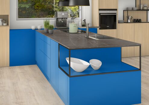 Насыщенный Делфт голубой выгодней всего смотрится в качестве акцента в сочетании со светлыми или белыми древесными декорами. За счёт своей интенсивности он принадлежит к числу базовых цветовых оттенков.