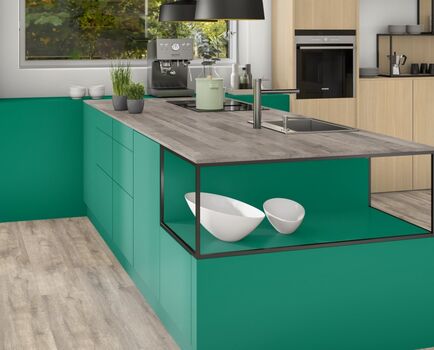 Декор Зелёный изумрудный привлекает своим насыщенным, сочным цветом и нестандартным соединением синего и зелёного цветов, которым обладает только изумруд. Особенно свежо смотрятся комбинации со светлыми, желтоватыми древесными декорами.