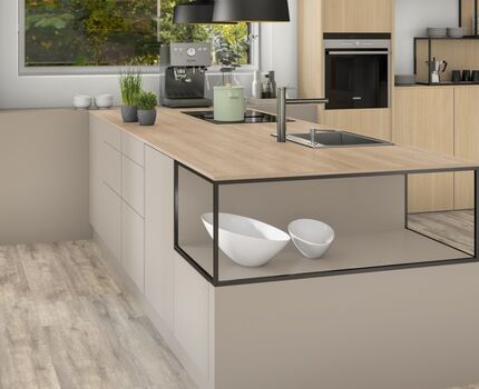 Тёплый цвет декора Серый камень нейтрального оттенка гармонирует с разными современными древесными декорами с долей серого. Благодаря своему современному и в то же время натуральному внешнему виду этот декор пользуется большой популярностью в дизайне жилых помещений.