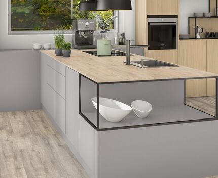 Арктика серый – нейтральный оттенок серого с долей голубого. В сочетании с древесными репродукциями он создаёт сильный, холодный контраст. Совместно с некоторыми репродукциями материалов, например, бетона, он подходит для оформления интерьера тон в тон.