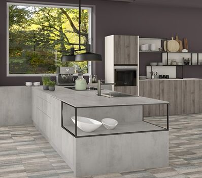 Дуб Шерман серый имитирует окрашенную репродукцию древесины, которая сочетается с широким спектром однотонных декоров от нейтральных до ярких.