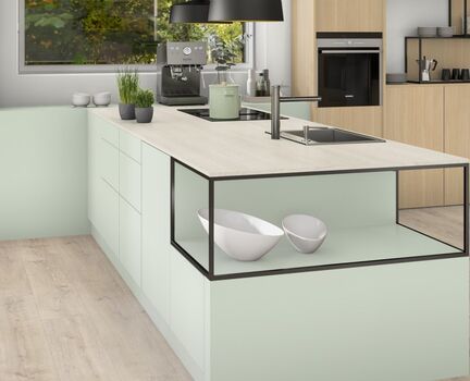Светлый и холодный Зелёный фисташковый с примесью серого относится к линии пастельных декоров. В изготовлении мебели этот декор наиболее часто используется в сочетании с тёмными репродукциями древесины.