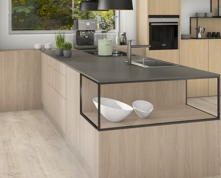 Гармоничный рисунок декора Дуб Орлеанский песочно-бежевый прежде всего подходит для создания сдержанного дизайна интерьера, в котором древесная репродукция не должна выходить на первый план. Благодаря светлым порам данный декор хорошо смотрится в комбинациях с оттенками белого цвета. Однако он также прекрасно сочетается с репродукциями материалов серого цвета и однотонными декорами.