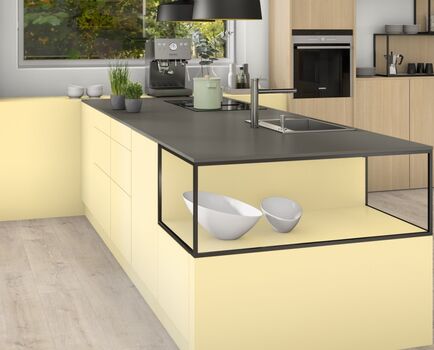 Бархат жёлтый – самый светлый оттенок жёлтого в палитре однотонных декоров ЭГГЕР. Этот слегка беловатый жёлтый декор можно использовать в модном сочетании с оттенками серого, а также в более классической комбинации с натуральными или тёмными древесными репродукциями. Во внутренней отделке помещений благодаря пастельному оттенку этот декор может также применяться на больших поверхностях, оставаясь при этом не слишком броским.