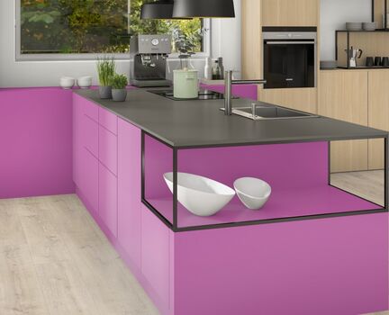 Крокус фиолетовый подходит в качестве яркого акцента к разным древесным декорам, но особенно гармонично смотрится в сочетании с серыми и белыми репродукциями материалов. Этот оттенок редко применяется в отделке мебели. Скорее его используют в интерьерах магазинов и ресторанов в качестве эффектного акцента или сигнального цвета.