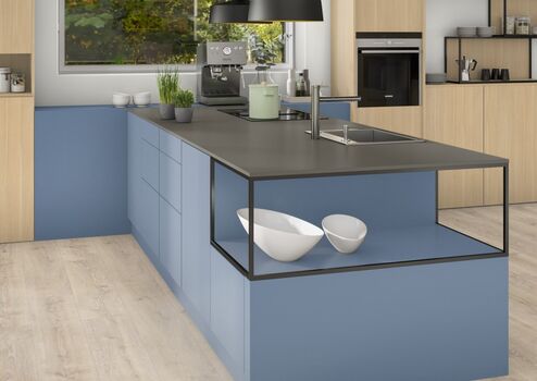 Дымчато-голубой относится к серо-синим оттенкам, которые за счёт своего сдержанного характера создают гармоничные сочетания вместе с естественными современными древесными декорами с некоторой долей серого. В скандинавском дизайне этот цвет часто сочетают с белыми или светлыми древесными декорами.