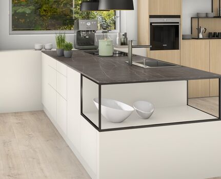 Ангора серая – относится к очень светлым серым оттенкам, но выделяется за счёт своего скорее красноватого тона. Этот декор подходит для создания абсолютно любых комбинаций. В сочетании с нейтральными, а также красноватыми репродукциями древесины он смотрится особенно мягким и ровным.
