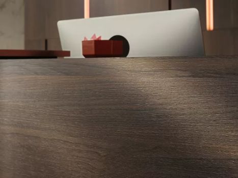 Имитации текстуры экзотических пород древесины, такие как, например, H3041 Эвкалипт натуральный, также становятся все более классическими и сдержанными. Естественность этого экзотического декора делает его актуальным для новых вариантов дизайна мебели. Кроме того, мягкие переходы и полосы в его рисунке добавляют ему современного шарма, который лучше всего проявляется в комбинациях с нейтральными оттенками цвета тауп. Лакированная поверхность TM12 PerfectSense Поры матовые придает декору вид древесины с натуральными матовыми порами, приятный бархатистый рельеф которых можно почувствовать на ощупь. Поверхность, на которой не остается следов от пальцев при прикосновении, повышает эксплуатационные свойства темных репродукций древесины, поэтому их можно применять для различных целей при оформлении интерьеров помещений общественного назначения.