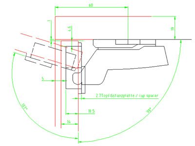 - Скрытая петля с техникой защелкивания со встроенным демпфером с функцией самозакрывания