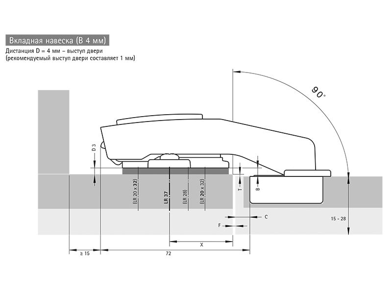 ПЕТЛЯ SENSYS 8639I,УГОЛ КОРПУСА W90,УГОЛ 95ГР,ЧАШКА TH52D35,ВКЛАДНАЯ,B4 - 9088021