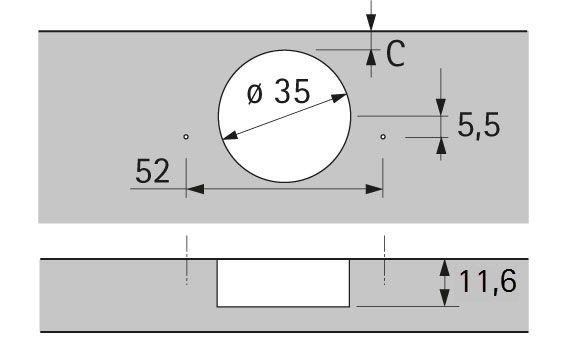 - Диаметр чашки петли 35 мм