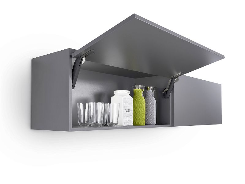 Механизм обеспечивает плавное и бесшумное открывание, закрывание и фиксацию фасада в любом положении.
