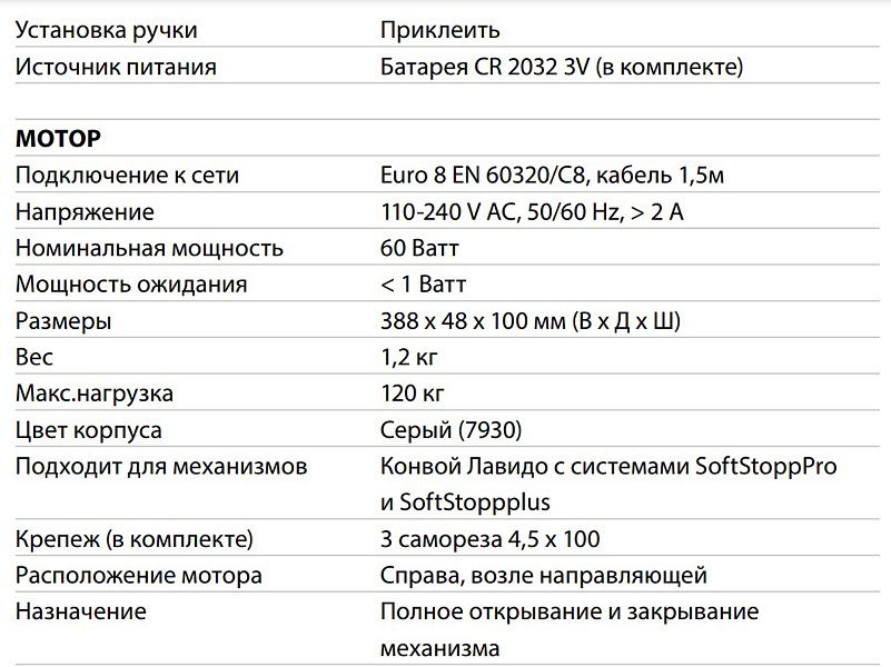 Электропривод с кабелем еТач, для Конвой Лавидо, СЕРЫЙ