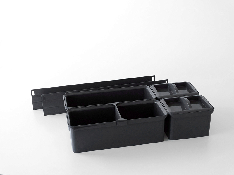 Система укомплектована органайзерами Юбокс, помогающими эффективно разместить предметы разных размеров и объёмов.