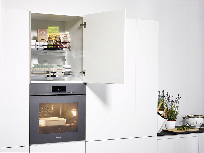 Торн Моушн - это вращающийся механизм, который помогает эффективно использовать сложнодоступные пространства на кухне — над встроенной бытовой техникой и в верхних отделениях высоких шкафов. Главное преимущество системы — независимое вращение каждой полки вокруг своей оси и регулировка по высоте. Так вы сможете грамотно задействовать каждый сантиметр кухни и быстро находить нужные вещи в шкафу.