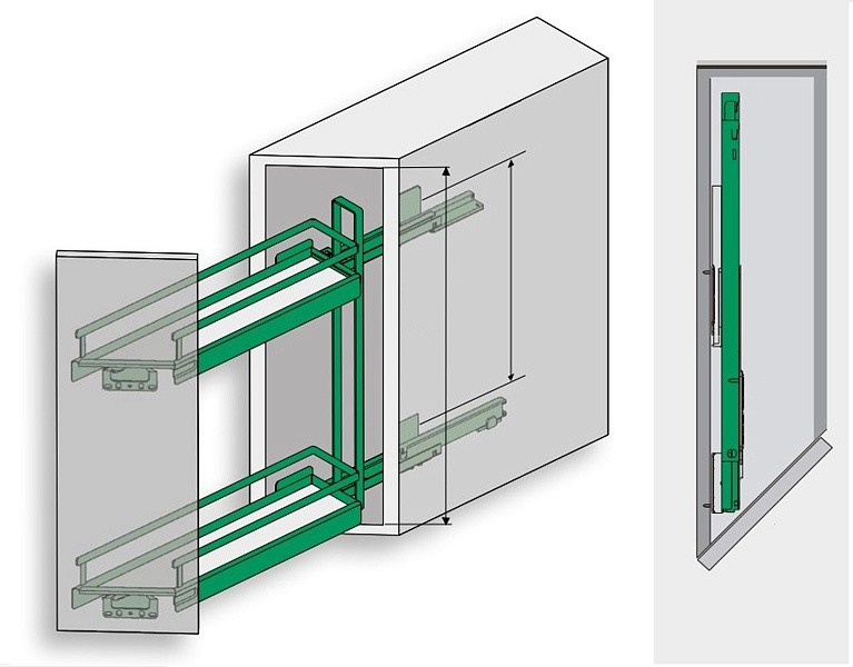 - Система крепится к левой стороне шкафа